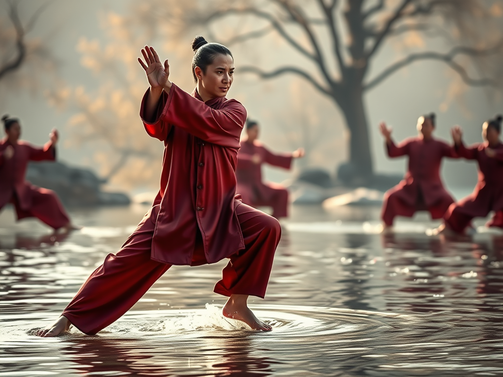 Otro aspecto clave es la conciencia plena en cada movimiento, lo que conduce al «esfuerzo sin esfuerzo», una acción natural y sin tensiones. El texto también aconseja mantener la atención en la cintura, ya que un abdomen relajado estimula el Qi y una columna vertebral erguida eleva el espíritu hacia la cabeza. La flexibilidad y suavidad corporal son esenciales, con la cabeza suspendida como si colgara de un hilo desde arriba. Finalmente, se insta al practicante a estar siempre alerta, buscando el verdadero significado del Tai Chi, permitiendo que los movimientos se desarrollen de manera natural y fluida.